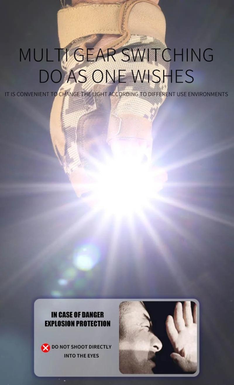 - Compact and Portable: The tactical torch features a compact design with a hook for easy carrying and storage. It can be placed in a pocket or backpack for convenient access, transport, and storage.