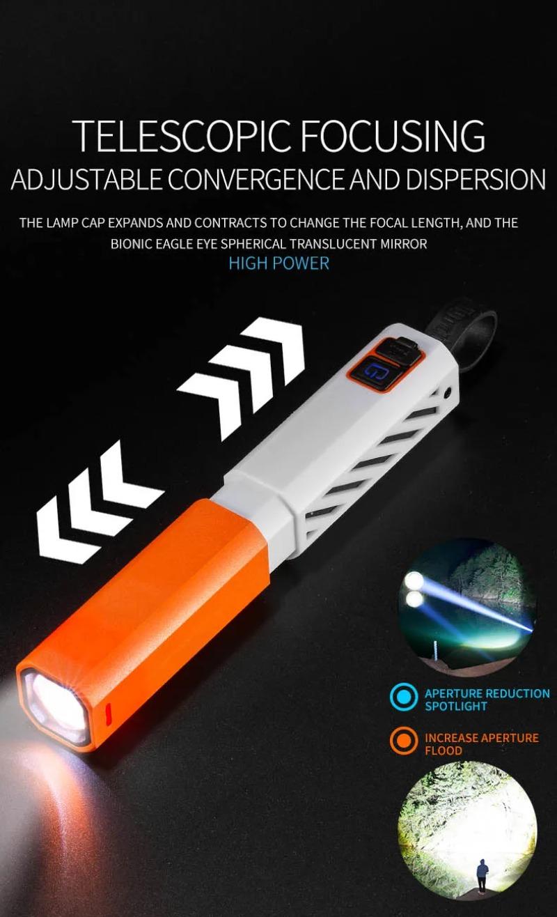 - Bright light chip: The LED chip in the flashlight provides high brightness and produces a large area of light, suitable for use as a floodlight or spotlight.