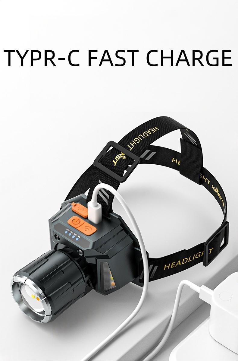 (COD) Rechargeable Headlamp 90° Adjustable Zoomable LED Headlight with COB Side Light for Outdoor Camping Hiking Fishing Cycling