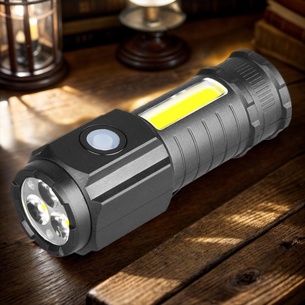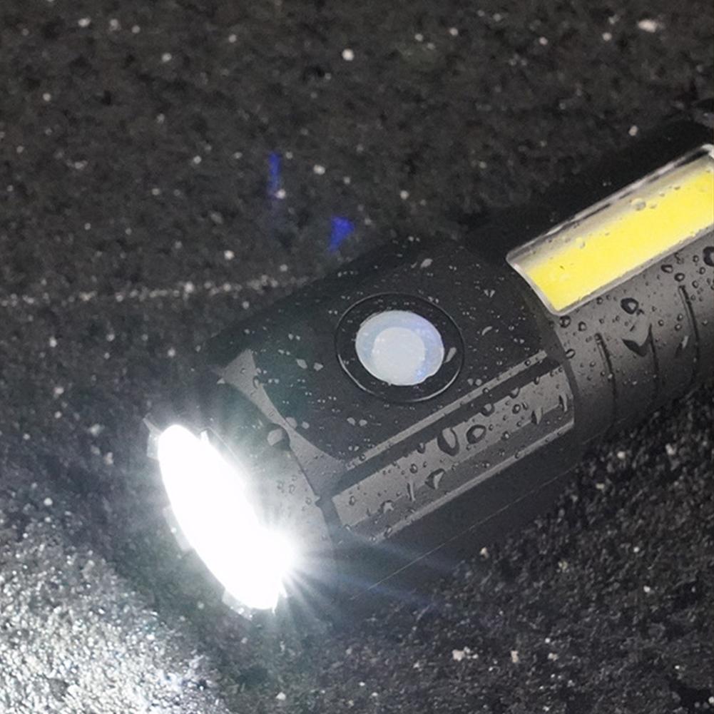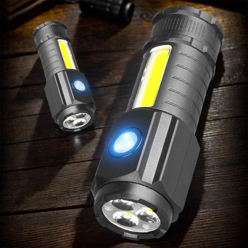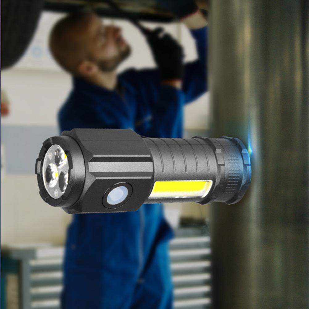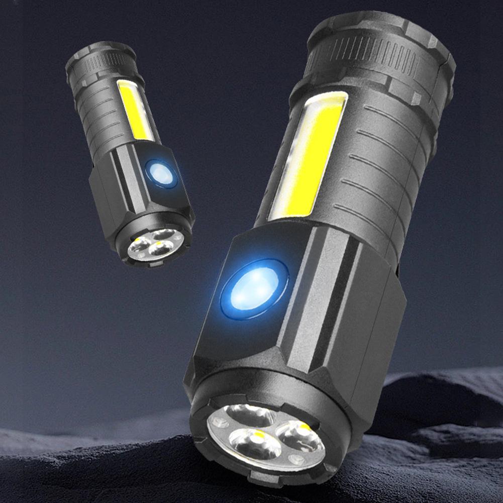 Super Bright 3LED Flashlight with Cap clips USB Recharge Mini Torch with COB Side Light Car Repair Working Lights for Outdoor Camping Hiking Fishing Cycling
