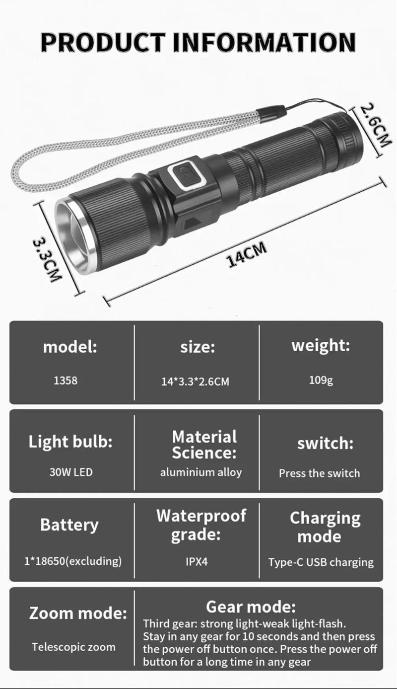 1*flashlight,1*USB cable,1*package box
