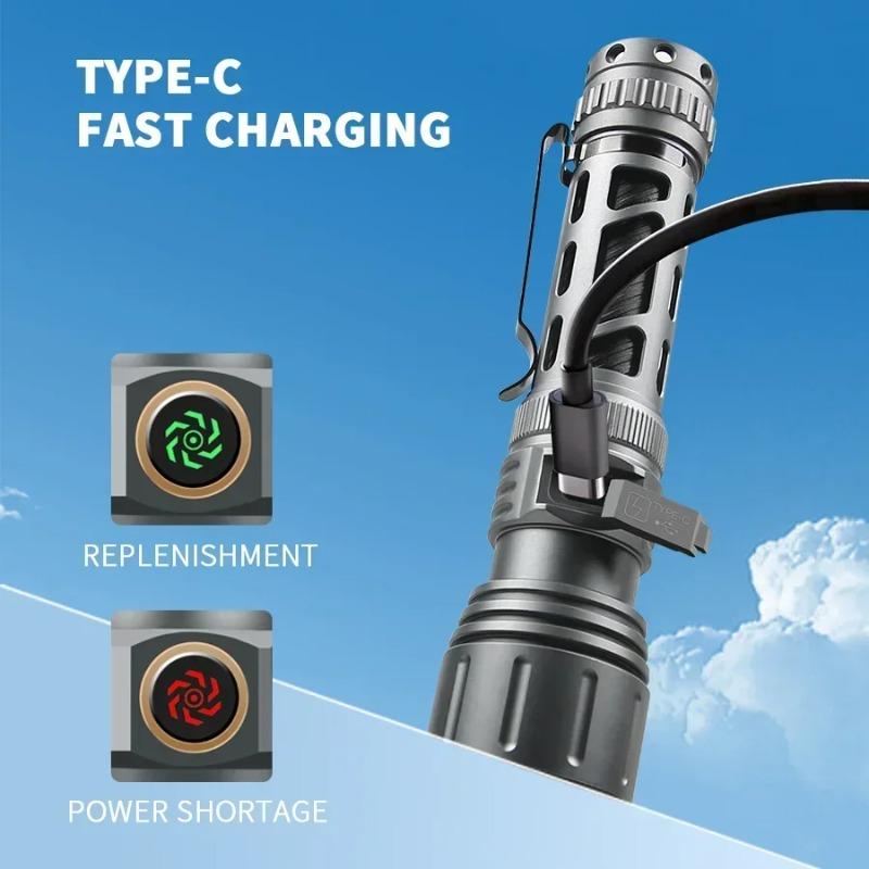 - Durability & Usability: Crafted from rugged, shock-resistant materials, this torch combines durability with ergonomic comfort. Its intuitive one-button control ensures seamless mode switching, while the anti-slip grip enhances handling in wet or dark conditions.