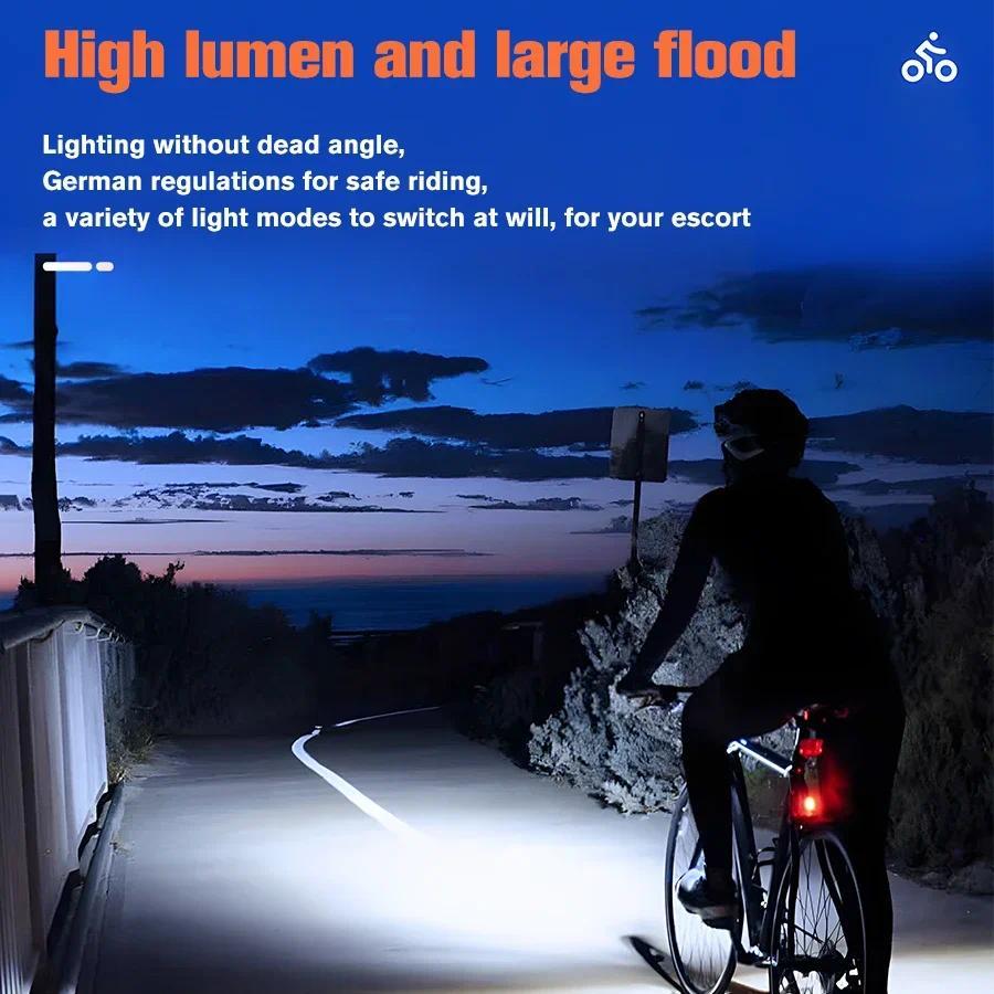 High lumen and large flood Lighting without dead angle,German regulations for safe riding,a variety of light modes to switch at will, for your escort