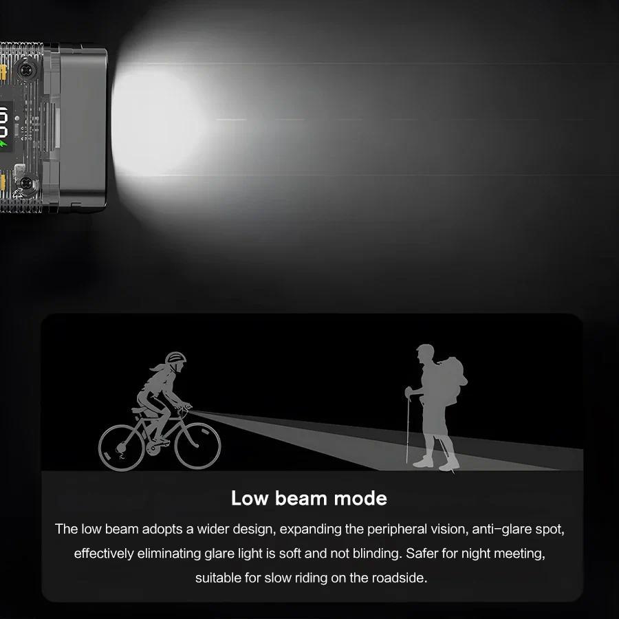 Low beam mode The low beam adopts a wider design, expanding the peripheral vision, anti-glare spoteffectively eliminating glare light is soft and not blinding. Safer for night meeting,suitable for slow riding on the roadside.