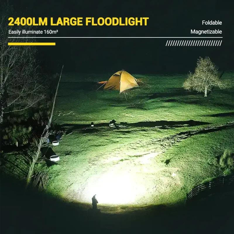1.Ultra-Bright & Adaptive Lighting:2000LM Wide Floodlight: Illuminates up to 160m² (1722 sq.ft), perfect for campsites, workspaces, or emergencies.