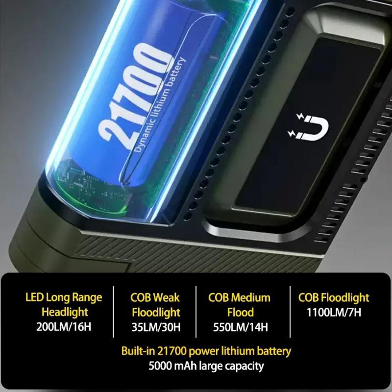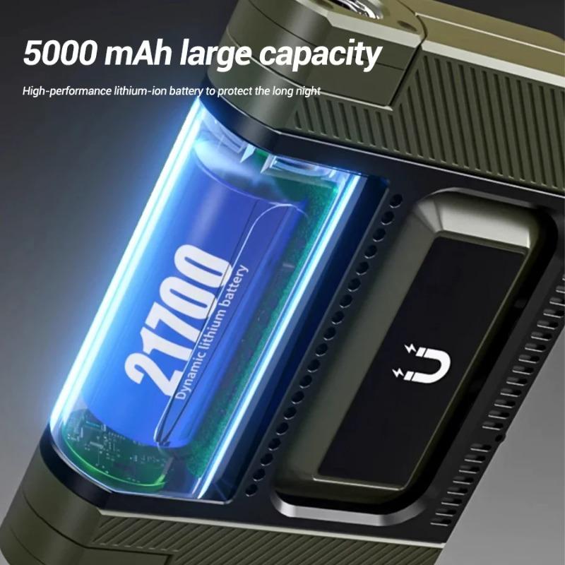Built-in 21700 Li-ion Battery: 5000mAh capacity delivers 7–30 hours runtime (varies by mode). Fast-charged via USB-C.