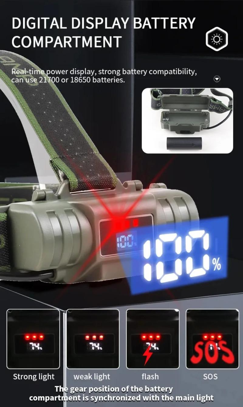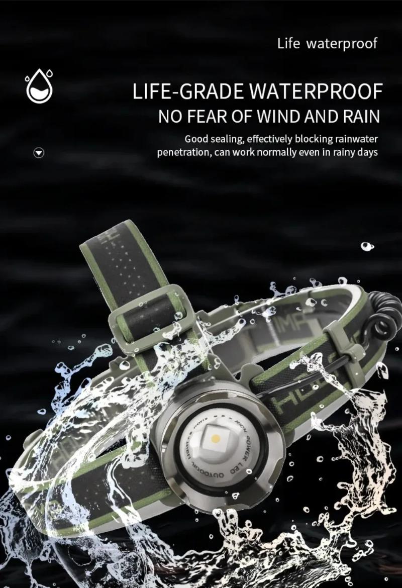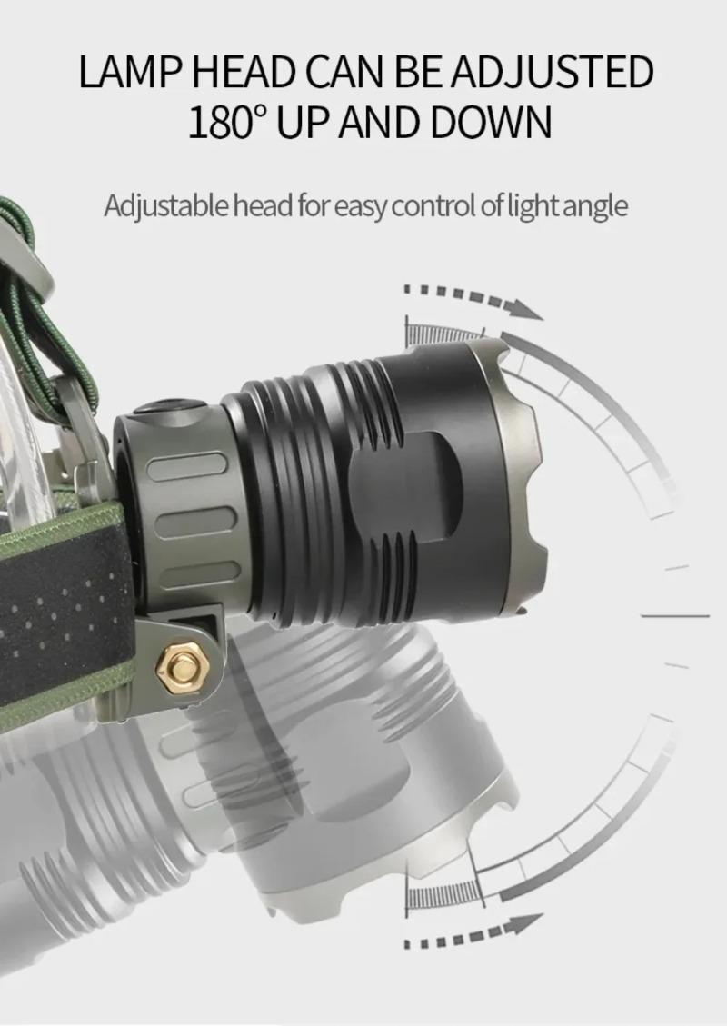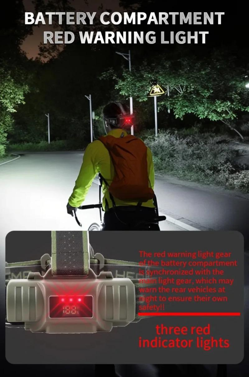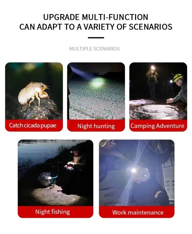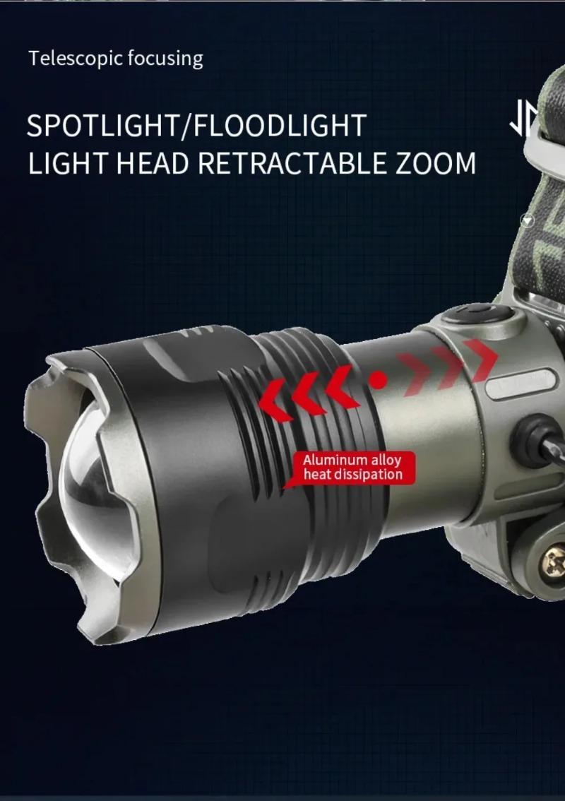 Ultra Bright LED Zoomable Headlight Rechargeable High Lumens Waterproof HeadLamp with Red Warning Light for Hiking Cycling Fishing