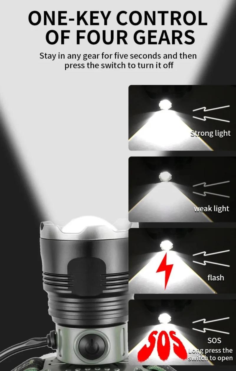 Four levels: Main light strong light - Main light weak light - Main light flash - Long press to turn on SOS
