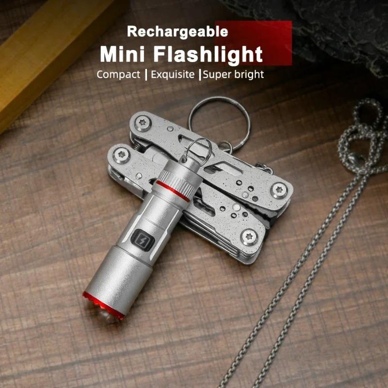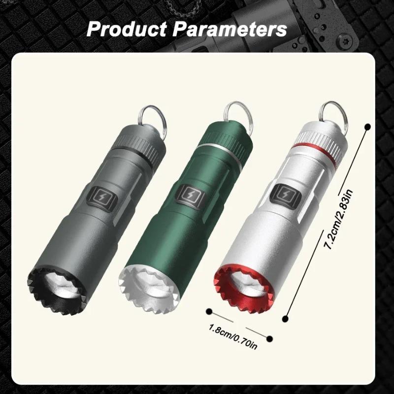 Ultra Bright LED Zoomable Keychain Flashlight Waterproof Multifunctional USB Rechargeable EDC Torch with hook for Outdoor Camping Hiking Night Walk Dog fishing climbing