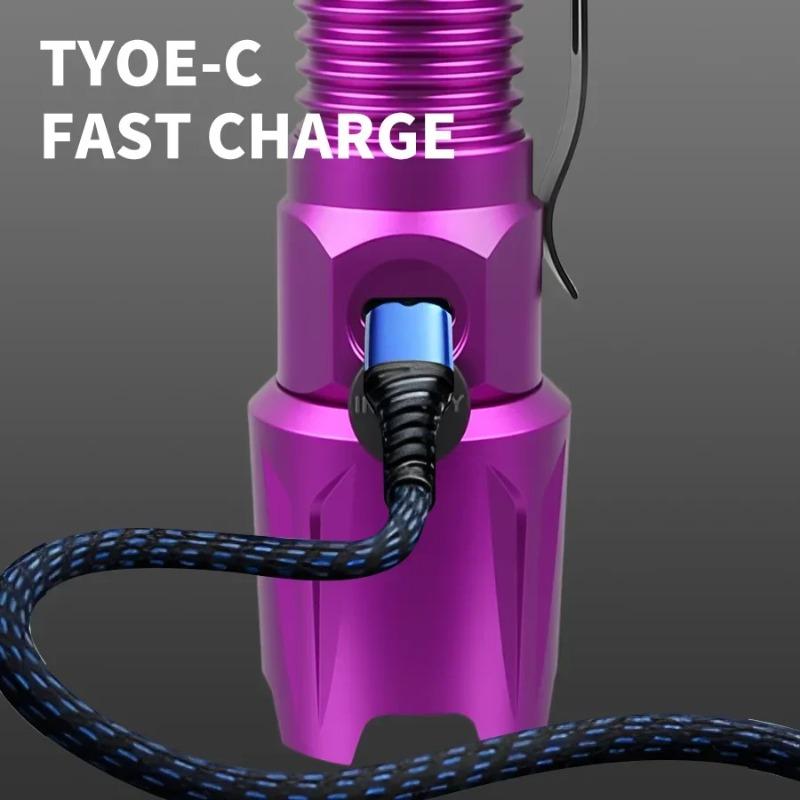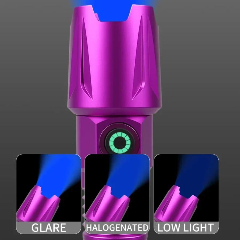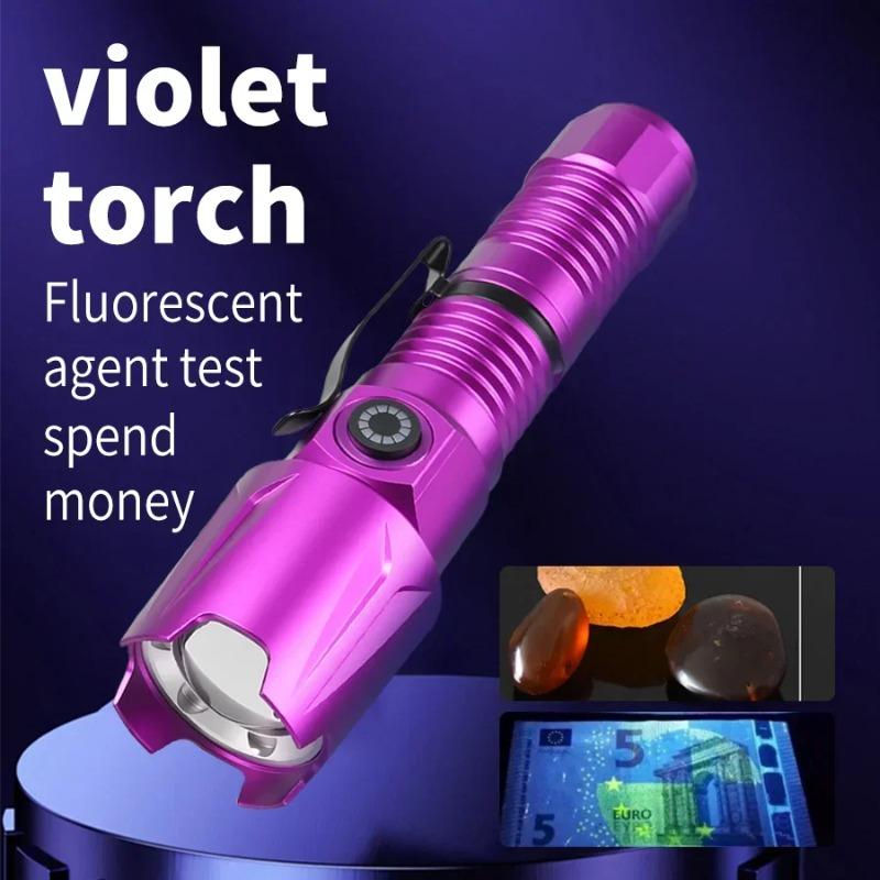 UV Zoomable Aluminum Alloy Flashlight 3 Lighting Modes Camping Ultraviolet Torch with Cap Clip for Pet Stacks Fluorescent Detection