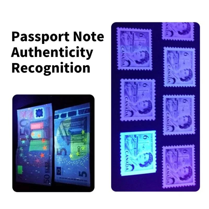 Emits 365nm UV-A light for detecting fluorescent agents, counterfeit currency, pet stains, and hidden security marks.